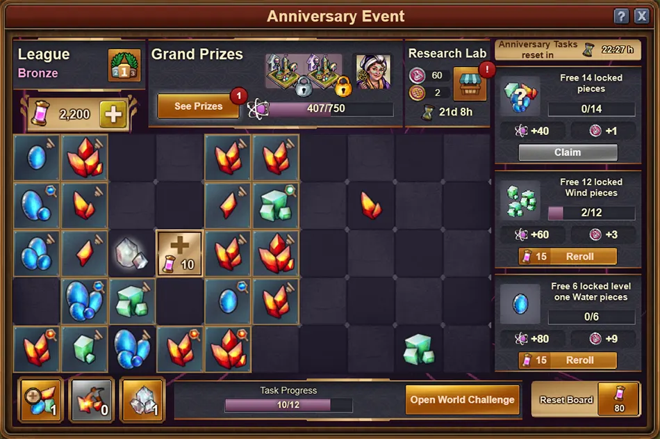 - Gewinne drei Kämpfe in Folge oder beende sechsmal eine 8h Produktion und beende (2-13)-mal eine 1h Produktion
