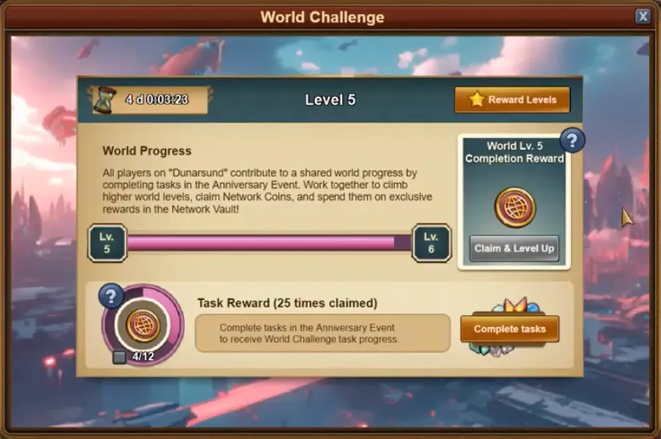 Bei der diesjährigen Weltweiten Herausforderung ist es eure Aufgabe, mit den Spielern in eurer Welt zusammenzuarbeiten, um so weit wie möglich voranzukommen. Jedes Mal, wenn ihr während des Events Edelsteine freischaltet, tragt ihr zum Gesamtfortschritt eurer Welt bei. Behaltet das Fenster der Weltweiten Herausforderung im Auge, in dem ihr verfolgen könnt, wie sich eure Bemühungen auswirken und wie eure Welt dem ultimativen Ziel näher kommt.