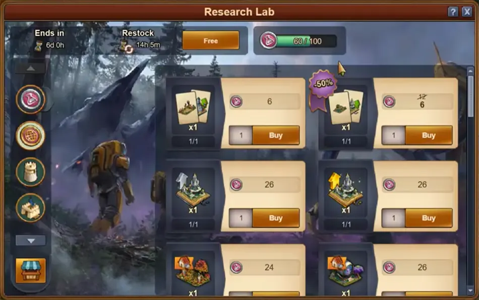 - Aktiviere einen Boost in der Taverne oder gib (12-60) Forge-Punkte aus und kaufe sieben Forge-Punkte