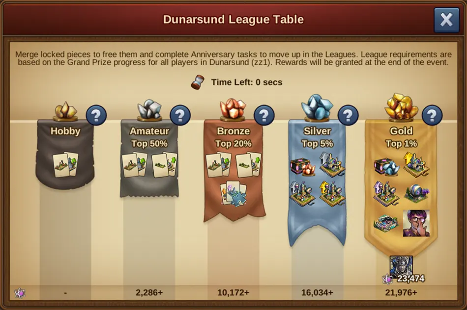 - Gewinne (2-5) Kämpfe in Folge oder spende (20-280) Güter in die Gildenkasse und beende (2-13)-mal eine 1h Produktion