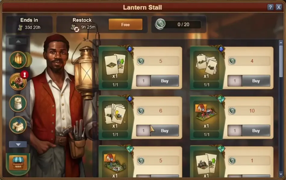 Der Laternen-Stand ist während des Events und noch einen Tag danach verfügbar. Er wird täglich aktualisiert, hat eine manuelle Aktualisierung, ein Rabatt-Roulette und hat eine Obergrenze von 20 Münzen. Dort könnt ihr eure Belohnungen mit